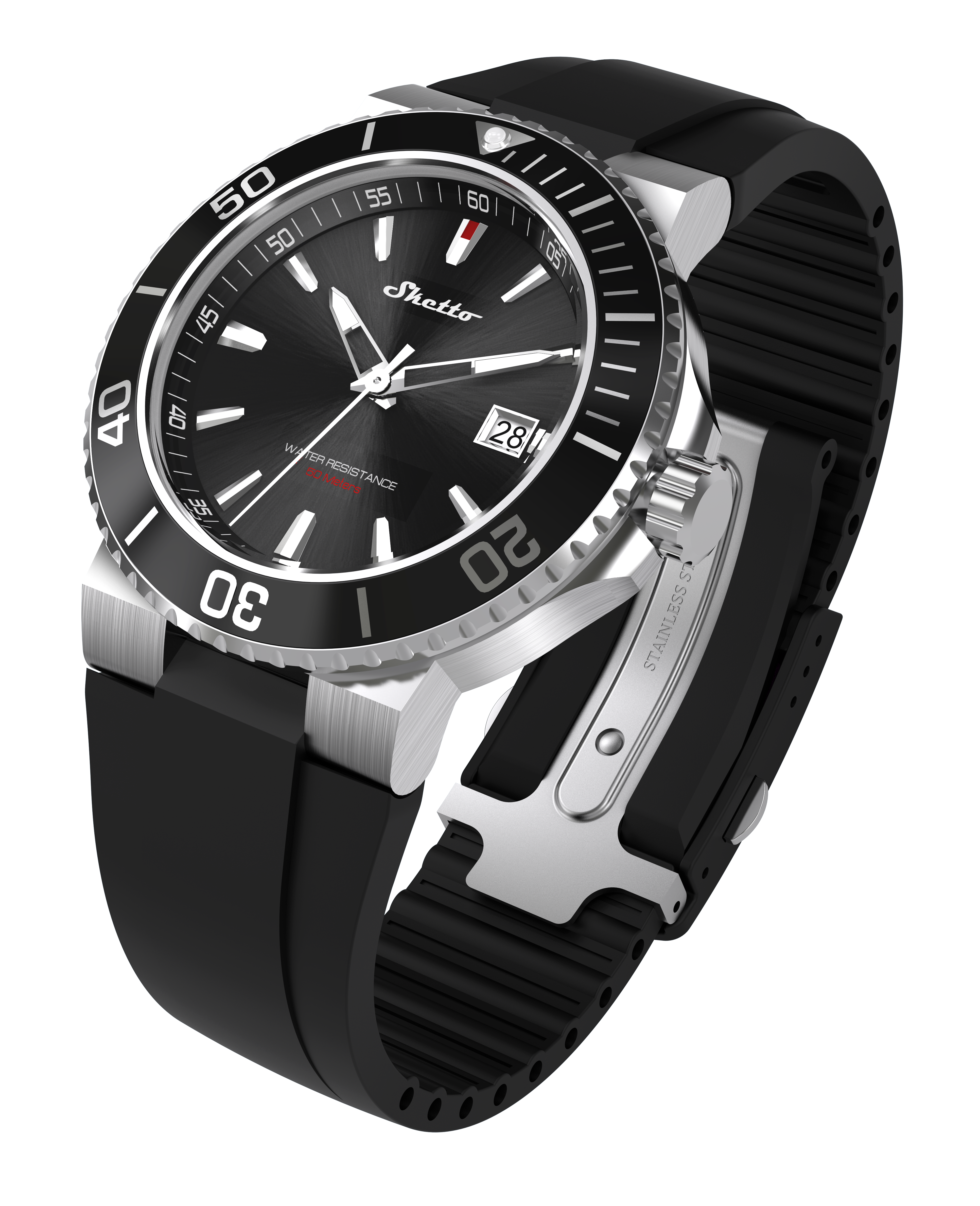 • Plactic case with stainless steel watch strap